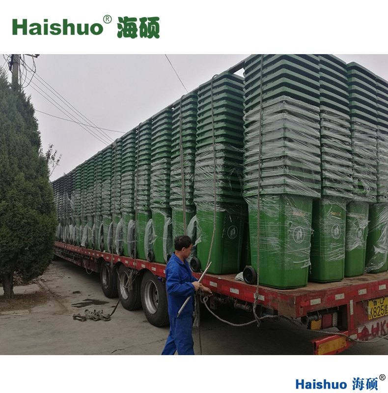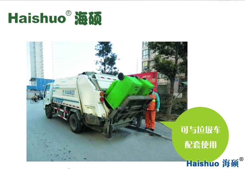 青島海碩 HS-120L-A-1環衛垃圾桶,全面加強的桶身能夠配合汽車升降機,使掛車升降時不破損。