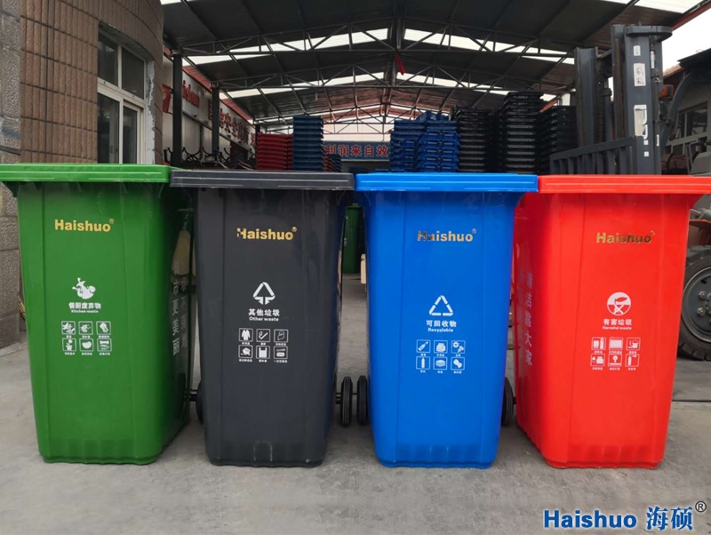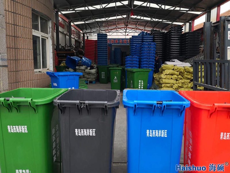 圖片為青島海碩環保設備有限公司為青島西海岸新區供應的240L分類垃圾桶