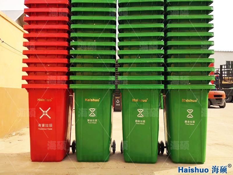 北京某社區定制的240L分類垃圾桶,已完成交付。 垃圾桶桶體均采用全新HDPE材料,抗磨抗凍,易清洗、易消毒。
