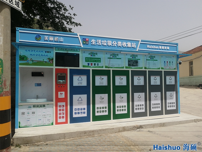 【主要功能】:垃圾稱重功能、線上APP積分兌換、多媒體宣傳服務、投放后洗手清潔、防雨、照明、監控還具有殺菌、除蟲、除臭功能等。